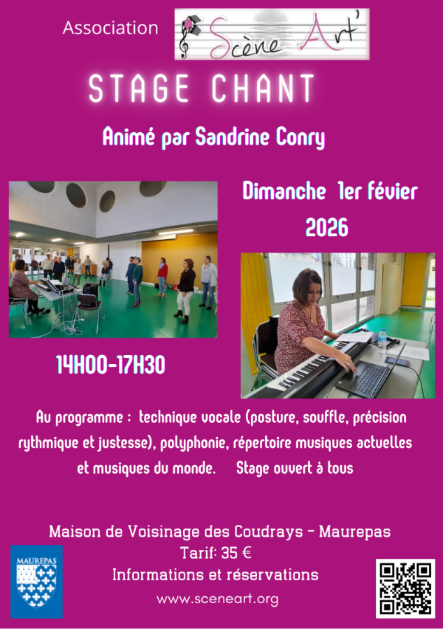 • Association Scène Art Maurepas  "Les ateliers artistiques",  ateliervocal.sceneart@gmail.com - Tel: 06 15 05 31 01